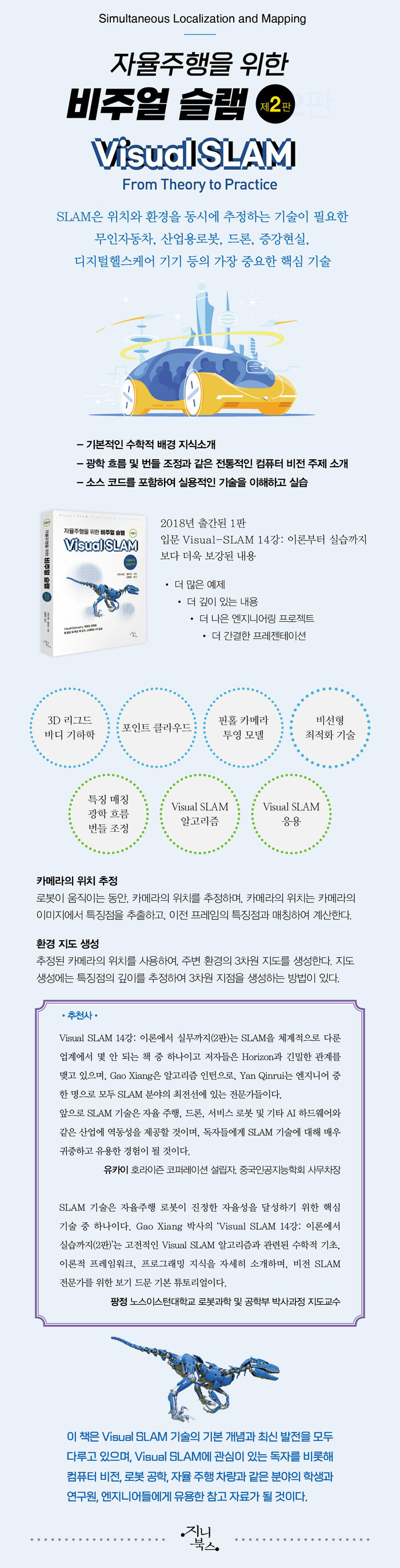 Visual SLAMÀ» ¼Ò°³Çϴ åÀÌ´Ù. ±×·¸´Ù¸é SLAMÀº ¹»±î? SLAMÀº Simultaneous Localization and MappingÀÇ ¾àÀÚ·Î, ¡°Áöµµ Á¦ÀÛ°ú µ¿½Ã¿¡ À§Ä¡¸¦ ÃßÁ¤ÇÑ´Ù¡±´Â ÀǹÌÀÌ´Ù. À̴ ƯÁ¤ ¼¾¼¸¦ žÀçÇÑ À̵¿Çü ·Îº¿À̳ª ÀÚÀ²ÁÖÇàü°¡ ¾î¶°ÇÑ »çÀü Á¤º¸ ¾øÀÌ À̵¿ Áß¿¡ ÁÖº¯ ȯ°æÀ» ¸ðµ¨¸µÇÏ°í ¿òÁ÷ÀÓÀ» ÃßÁ¤ÇÏ´Â °ÍÀ» ¸»ÇÑ´Ù[1]. À̶§ »ç¿ëµÈ ¼¾¼°¡ ÁÖ·Î Ä«¸Þ¶óÀÎ °æ¿ì À̸¦ ¡°Visual SLAM¡±À̶ó°í ÇÑ´Ù.