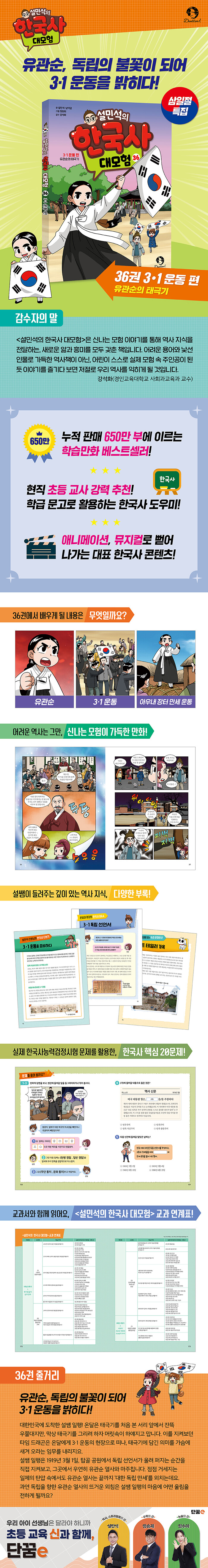¡º¼³¹Î¼®ÀÇ Çѱ¹»ç ´ë¸ðÇè¡» 36±ÇÀº 3¡¤1 ¿îµ¿ÀÇ ÇöÀå¿¡¼ ¶ß°Ì°Ô µ¶¸³À» ¿ÜÃÆ´ø À¯°ü¼ø ¿»çÀÇ À̾߱⸦ ´ã°í ÀÖ½À´Ï´Ù. ÀÏÁ¦ÀÇ Åº¾Ð°ú °¨½Ã¸¦ ÇÇÇØ ÇѸ¶À½À¸·Î 3¡¤1 ¿îµ¿À» ÁغñÇß´ø ¹ÎÁßµé, ±×¸®°í ¿¿©´ü »ìÀÇ ³ªÀÌ·Î ¾Æ¿ì³» ÀåÅÍÀÇ ¸¸¼¼ ¹°°áÀ» À̲ø¾ú´ø À¯°ü¼ø ¿»çÀÇ ¿ª»ç±îÁö! ÀÏÁ¦¿¡ ¸Â¼ ½Î¿î 3¡¤1 ¿îµ¿ÀÇ ÀÇ¹Ì¿Í ±×³¯ÀÇ °¨µ¿À» ´õ¿í »ý»ýÇÏ°Ô ¸¸³ª º¸¼¼¿ä.