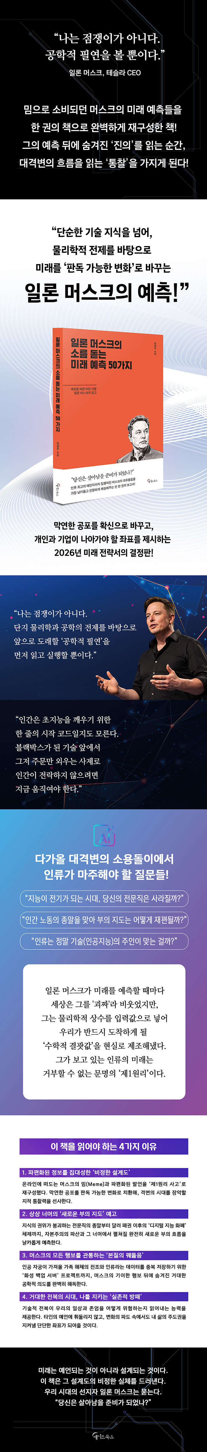 ÃÖ±Ù À¯Æ©ºê¿Í SNS¿¡¼´Â ¿¬ÀÏ ÀÏ·Ð ¸Ó½ºÅ©ÀÇ ¹ß¾ðµéÀÌ ¼îÃ÷¿Í ¸±½ºÀÇ ´Ü°ñ ¼ÒÀç°¡ µÇ¸ç °·ÂÇÑ ¹Ò(Meme)À¸·Î ¼ÒºñµÇ°í ÀÖ´Ù. ±×·¯³ª ÈÁ¦¼º¿¡ ¸Å¸ôµÈ Á¤º¸´Â ¸Æ¶ôÀÌ À߸° ä °úµµÇÑ ¿Ü°æÀ̳ª °øÆ÷, ȤÀº Á¶·ÕÀÇ µµ±¸·Î Èê·¯°¡±â ½±´Ù. ¿ì¸®´Â ¿Ö ¼ö¸¹Àº Àü¹®°¡¸¦ µÚ·ÎÇϰí ÀÏ·Ð ¸Ó½ºÅ©ÀÇ ÀÔ¿¡ ±Í¸¦ ±â¿ïÀ̴°¡? ±×´Â ´Ü¼øÈ÷ ¹Ì·¡¸¦ Á¡Ä¡´Â ¿¹¾ðÀÚ°¡ ¾Æ´Ï¶ó, ¹°¸®Çаú °øÇÐÀÇ ÀüÁ¦¸¦ ¹ÙÅÁÀ¸·Î ¡®°¡´ÉÇÑ °æ·Î¡¯¸¦ ¼³Á¤ÇÏ°í ±×°ÍÀ» Çö½ÇÀÇ Á¦Ç°°ú ½Ã½ºÅÛÀ¸·Î ¹Ð¾îºÙÀÌ´Â ½ÇÇàÀÚÀ̱⠶§¹®ÀÌ´Ù. ±×¿¡°Ô ¹Ì·¡´Â ¡®¾î¼´Ù ÀϾ´Â »ç°Ç¡¯ÀÌ ¾Æ´Ï¶ó, ·Îµå¸Ê°ú °øÁ¤ÀÇ ¾ð¾î·Î ¼³°èµÇ´Â ¡®µµÂøÇØ¾ß ÇÒ ÁöÁ¡¡¯¿¡ °¡±õ´Ù. ÀÌ Ã¥Àº ±× À߸° ¸Æ¶ôÀ» º¹¿øÇØ ¹ß¾ðÀÇ ¹è°æ°ú ÀüÁ¦¸¦ ÇÔ²² ÀÐ°Ô ÇÔÀ¸·Î½á, µ¶ÀÚ°¡ ¹ÒÀÇ ¼Óµµ¿¡ ÈÛ¾µ¸®Áö ¾Ê°í ¡®¹«¾ùÀ» °¡Á¤Ç߱⿡ ÀÌ·± ¸»ÀÌ ³ª¿Ô´Â°¡¡¯¸¦ ¸ÕÀú ¹¯µµ·Ï ¸¸µç´Ù.
