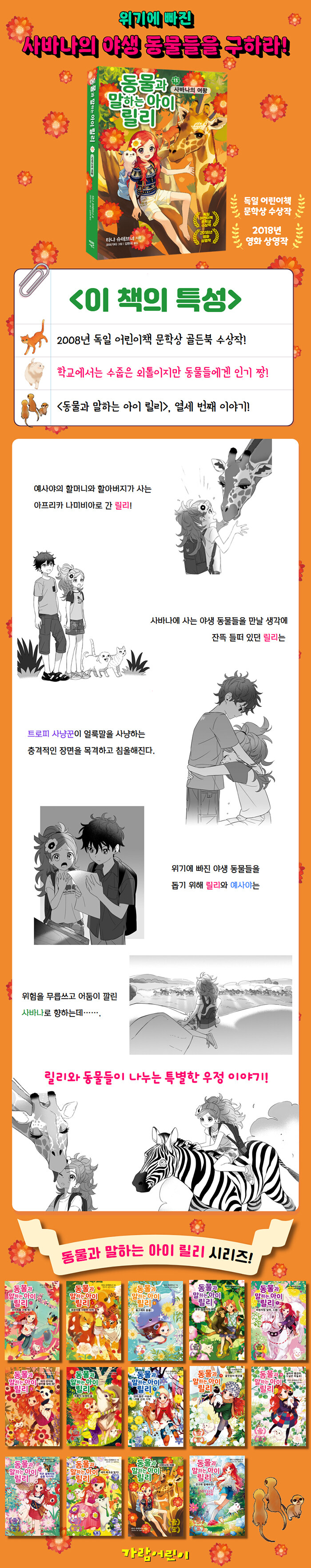 [µ¿¹°°ú ¸»ÇÏ´Â ¾ÆÀÌ ¸±¸®] ½Ã¸®Áî´Â Ưº°ÆÇÀ» Æ÷ÇÔÇØ ÇöÀç ¿³× ±ÇÀÌ ³ª¿Í ÀÖÀ¸¸ç, »õ·Î¿î À̾߱âµéÀÌ °è¼Ó Ãâ°£ ÁßÀÌ´Ù. ½ÅºñÇÑ ÈûÀ» Áö´Ñ ¼Ò³à°¡ µ¿¹°µé°ú ¿ìÁ¤À» ³ª´©´Â µû¶æÇϰí À¯ÄèÇÑ ¿¡ÇǼҵåµéÀ» ÅëÇØ µ¶ÀÚµéÀº µµ´öÀûÀÎ ¿ë±â, ³²°ú ´Ù¸¥ ³ª, µÎ·Á¿ò ±Øº¹ µî »îÀÇ ÁöÇý¸¦ ¹è¿ì°í, µ¿¹°°ú ÀÚ¿¬ º¸È£¿¡ ´ëÇØ¼µµ ´Ù½Ã Çѹø »ý°¢ÇØ º¼ ±âȸ¸¦ °¡Áú ¼ö ÀÖ´Ù.