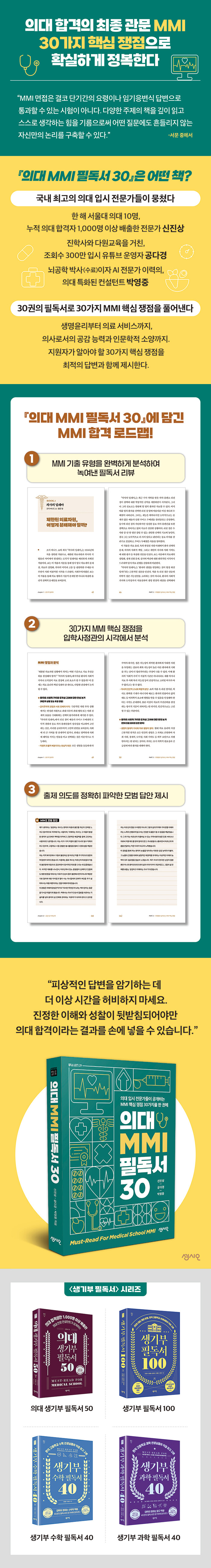 ¼ö¸¹Àº ÀÇ´ë ÇÕ°Ý»ýÀ» ¹èÃâÇÑ ÀԽà Àü¹®°¡ ¼¼ ¸íÀÌ ÇÔ²² ¾´ ¡ºÀÇ´ë MMI Çʵ¶¼ 30¡»Àº ³Ê¹«³ª ¹æ´ëÇÏ°í Æ÷°ýÀûÀÎ ½ÃÇèÀÌ¶ó ¸·¿¬ÇÏ°í ¾î·Æ°Ô¸¸ ´À²¸Áö´ø MMI¸¦ ¼±¸íÇÏ°Ô °³³äÈÇÏ¸é¼ MMI°¡ ¿ä±¸ÇÏ´Â °ÍÀÌ ¹«¾ùÀÎÁö ºÐ¸íÇÏ°Ô Á¦½ÃÇÑ´Ù. MMI¸¦ ¾î¶»°Ô ÁغñÇÏ°í ¾î¶² ¹æ½ÄÀ¸·Î °øºÎÇØ¾ß ÇÏ´ÂÁö ¸ô¶ó ÇпøÀ̳ª ±âÃâ ¹®Á¦Áý¿¡ ÀÇÁ¸Çß´ø ÀԽûýµéµµ ÀÌ Ã¥À» ÅëÇØ Á» ´õ º»ÁúÀûÀ̰í È¿À²ÀûÀ¸·Î MMI¸¦ ÁغñÇØ ³ª°¥ ¼ö ÀÖÀ» °ÍÀÌ´Ù.