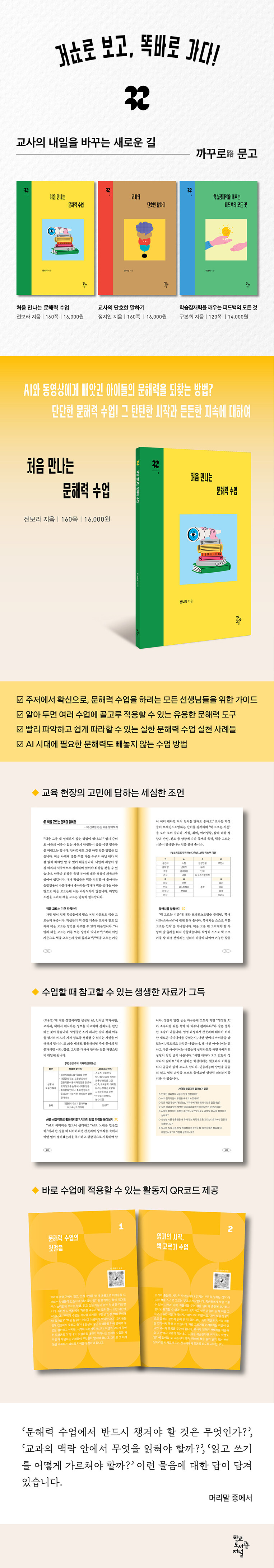 ±³À°ÀÇ Æ²À» ºñƲ°í ±³À°¼ÀÇ »õ¹Ù¶÷À» ÀÏÀ¸Å°·Á´Â ¡®±î²Ù·Î ¹®°í¡¯ÀÇ Ã¹ ¹øÂ° Ã¥ÀÌ´Ù. ¡º¼ö¾÷¿¡ ¹Ù·Î ½á¸Ô´Â ¹®ÇØ·Â µµ±¸¡»¿Í ¡ºAI ½Ã´ë ¹®ÇØ·Â µµ±¸ 30¡»À¸·Î ¹®ÇØ·Â ¼ö¾÷ÀÇ ¹æ¹ý°ú °¡´É¼ºÀ» ³Î¸® ¾Ë·Á ¿Â ÀúÀÚ°¡ °ÀÇ¿Í ºÏÅäÅ© µî ±³À° ÇöÀå¿¡¼ ¸¶ÁÖÇÑ ¹®ÇØ·Â ¼ö¾÷¿¡ ´ëÇÑ ´Ù´ÜÇÑ Áú¹®¿¡ ²Ä²ÄÇϰí Ä£ÀýÇÏ°Ô ´äÇÑ´Ù.