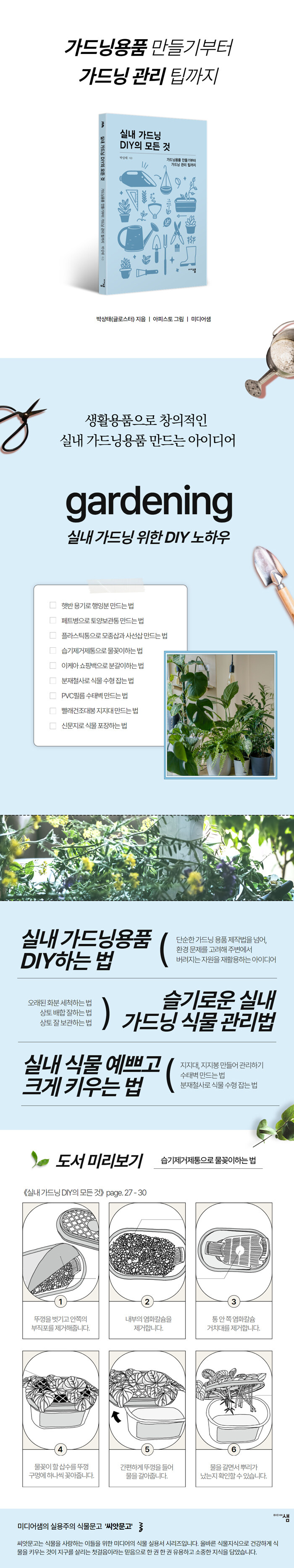 ºó ¸¶¿ä³×ÁîÅëÀ¸·Î ¸ðÁ¾»ðÀ» ¸¸µé°Å³ª, ´Ù ¾´ ½À±âÁ¦°ÅÁ¦ ÅëÀ¸·Î ½Ä¹° ¹ø½Ä¿ë ¹°²ÈÀÌÅëÀ¸·Î ¾²´Â ¾ÆÀ̵ð¾î´Â ¾î·ÆÁö ¾Ê°Ô ¸¸µé ¼ö ÀÖ´Â ½ò½òÇÑ ÆÁÀ̱⵵ ÇÏ´Ù. ±× ¿Ü¿¡ ȺР¼¼Ã´¹ýÀ̳ª, ºÐ°¥ÀÌ ÈëÀ» Àß º¸°üÇÏ´Â ¹ý, »Ñ¸®ÆÄ¸® ÅðÄ¡ÇÏ´Â ¹ý µî ¿ëǰ DIY¿¡¼ºÎÅÍ ½Ç³» °¡µå´×¿¡¼ ²À ÇÊ¿äÇÑ ½Ä¹° °ü¸®¹ý¿¡ À̸£±â±îÁö ´Ù¾çÇÑ °¡µå´× ÆÁÀ» ¾ËÂ÷°Ô ½Ç¾ú´Ù. ½Ç³»¿¡¼ ´Ù¾çÇÑ ½Ä¹°À» Ű¿ì°íÀÚ ÇÏ´Â Ãʺ¸ÀÚºÎÅÍ ¼÷·ÃµÈ °¡µå³Ê±îÁö ¸ðµÎ°¡ Ȱ¿ëÇÒ ¼ö ÀÖ´Â ¾ÆÀ̵ð¾îµéÀÌ °¡µæÇÏ´Ù.