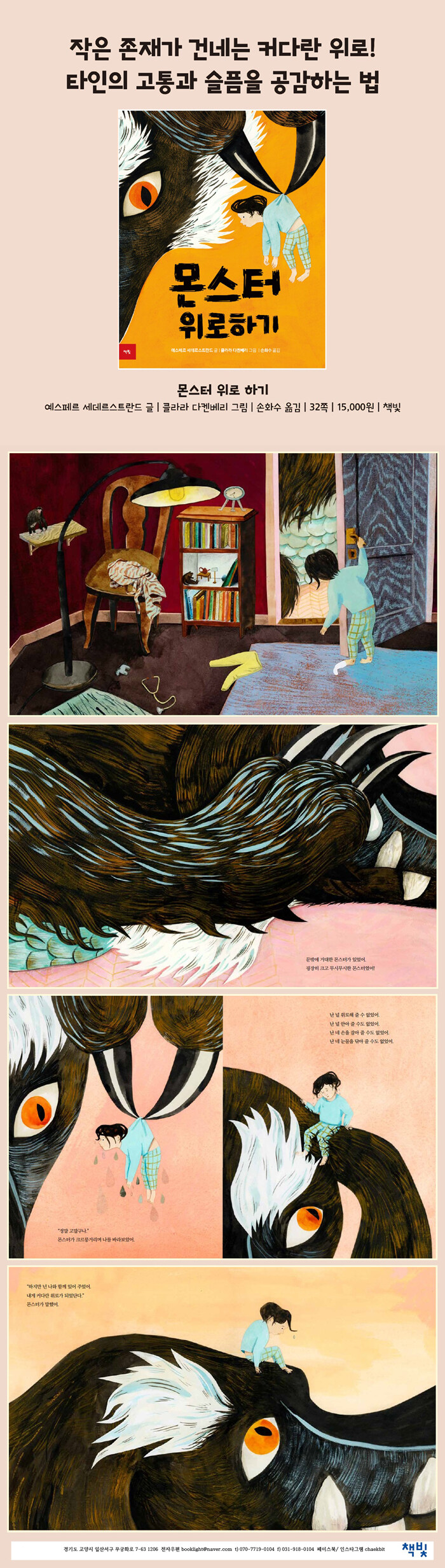 Å©¸£¸£¸£¸ª! ÀÌ»óÇÑ ¼Ò¸®°¡ µé·Á ³ª°¡º¸´Ï ¹®¹Û¿¡ °Å´ëÇÑ ¸ó½ºÅͰ¡ ÀÖ½À´Ï´Ù. »ÏÁ·ÇÑ ¹ßÅé, Ä¿´Ù¶õ ºñ´Ã, ³¯Ä«·Î¿î ÀÌ»¡À» °¡Áø ¸ó½ºÅ͸¦ º¸°í ¾ÆÀ̰¡ ¸ÕÀú ¾Ë¾ÆÂ÷¸®´Â °ÍÀº ¸ó½ºÅͰ¡ ½½ÇÁ´Ù´Â °ÍÀÔ´Ï´Ù. ¾ÆÀÌ´Â ¸ó½ºÅ͸¦ ¾È¾ÆÁÖ°í, ¼ÕÀ» Àâ¾ÆÁÖ°í, ´«¹°À» ´Û¾ÆÁÖ·Á°í ÇÕ´Ï´Ù. ÇÏÁö¸¸ ÀÛÀº ¾ÆÀÌ´Â Ä¿´Ù¶õ ¸ó½ºÅÍ¿¡°Ô ¾Æ¹«°Íµµ ÇØÁÙ ¼ö°¡ ¾ø½À´Ï´Ù. ¾ÆÀÌ´Â ¾î¶»°Ô ¸ó½ºÅ͸¦ À§·ÎÇÒ ¼ö ÀÖÀ»±î¿ä?