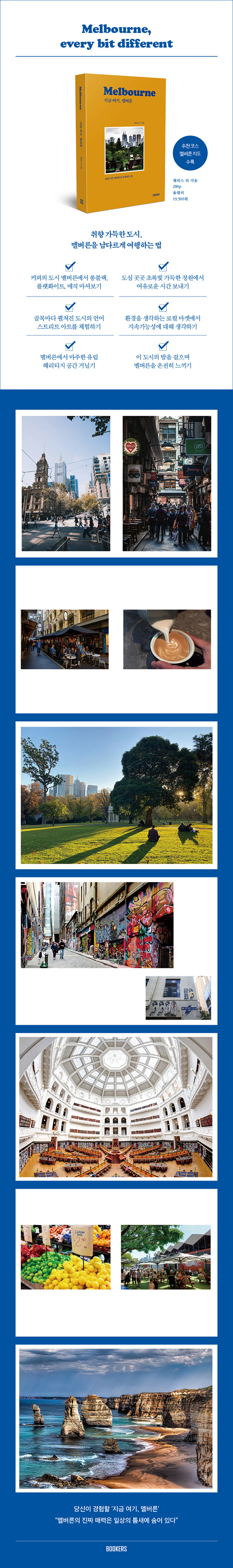 È£ÁÖ¿¡ Á¤ÂøÇØ 20³â°£ ¿©Çà¾÷¿¡ ¸ö´ã¾Æ¿Â ÀúÀÚ´Â ¸á¹ö¸¥ÀÇ »ç°èÀýÀº °æÇèÇϸç ÀÌ µµ½Ã°¡ ǰÀº ºû°ú °ø±â, ±×¸®°í ±× ¼Ó¿¡¼ »ì¾Æ ¿òÁ÷ÀÌ´Â ¸á¹ö¸¥ÀÇ ½Ã°£À» ±â·ÏÇϰíÀÚ Çß´Ù. ´Ù¾çÇÑ ÀÎÁ¾°ú ±¹Àû, ÃëÇâÀÌ ¸ð¿© ÇϳªÀÇ µµ½Ã°¡ µÇ´Â °÷, ºòÅ丮¾ÆÁÖ °ü±¤Ã»ÀÇ ½½·Î°Ç ¡®Melbourne, every bit different¡¯Ã³·³ ¸ðµç °ÍÀÌ ¡®Á¶±Ý¾¿ ´Ù¸¥¡¯ ÀÌ µµ½Ã°¡ óÀ½ ãÀº À̵鿡°Ô´Â ¼³·½ÀÌ, ÀÌ¹Ì ´Ù³à°£ À̵鿡°Ô´Â ±×¸®¿òÀÌ, ¾ðÁ¨°¡ À̰÷¿¡¼ »ì¾Æº¸°í ½ÍÀº À̵鿡°Ô´Â ÀÛÁö¸¸ È®½ÇÇÑ ¿ë±â°¡ µÇ¾îÁֱ⸦ ¹Ù¶ó¸é¼.