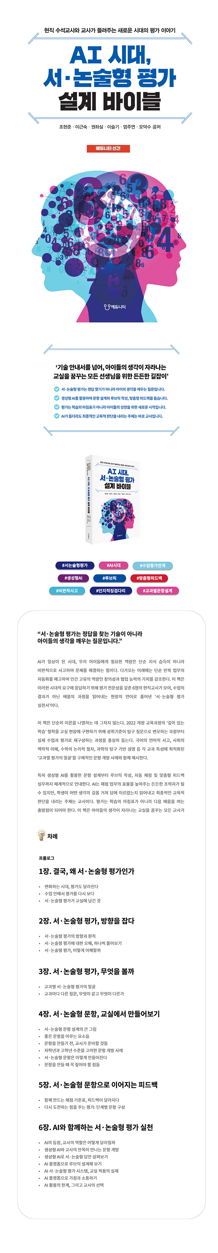 ¼¡¤³í¼úÇü Æò°¡´Â Á¤´äÀ» ã´Â ±â¼úÀÌ ¾Æ´Ï¶ó ¾ÆÀ̵éÀÇ »ý°¢À» ±ú¿ì´Â Áú¹®ÀÌ´Ù. AI°¡ ÀÏ»óÀÌ µÈ ½Ã´ë, ¿ì¸® ¾ÆÀ̵鿡°Ô ÇÊ¿äÇÑ ¿ª·®Àº ´Ü¼ø Áö½Ä ½ÀµæÀÌ ¾Æ´Ï¶ó ºñÆÇÀûÀ¸·Î »ç°íÇÏ¸ç ¹®Á¦¸¦ ÇØ°áÇÏ´Â ÈûÀÌ´Ù. ´Ù°¡¿À´Â ¹Ì·¡¿¡´Â ´Ü¼ø ¹Ýº¹ ¾÷¹«ÀÇ ÀÚµ¿È¸¦ ¿¹°íÇϸç Àΰ£ °íÀ¯ÀÇ ¿ª·®ÀΠâÀǼº°ú Çù¾÷ ´É·ÂÀÇ °¡Ä¡¸¦ °Á¶ÇÑ´Ù. ÀÌ Ã¥Àº ÀÌ·¯ÇÑ ½Ã´ëÀû ¿ä±¸¿¡ ÀÀ´äÇϱâ À§ÇØ Æò°¡ Àü¹®¼ºÀ» °®Ãá 6¸íÀÇ ÇöÁ÷±³»ç°¡ ¸ð¿©, ¼ö¾÷ÀÇ °á°ú°¡ ¾Æ´Ñ ¹è¿òÀÇ °úÁ¤À» Àо´Â ÇöÀåÀÇ ¾ð¾î·Î Ç®¾î³½ ¡®¼¡¤³í¼úÇü Æò°¡ ½Çõ¼¡¯ÀÌ´Ù.