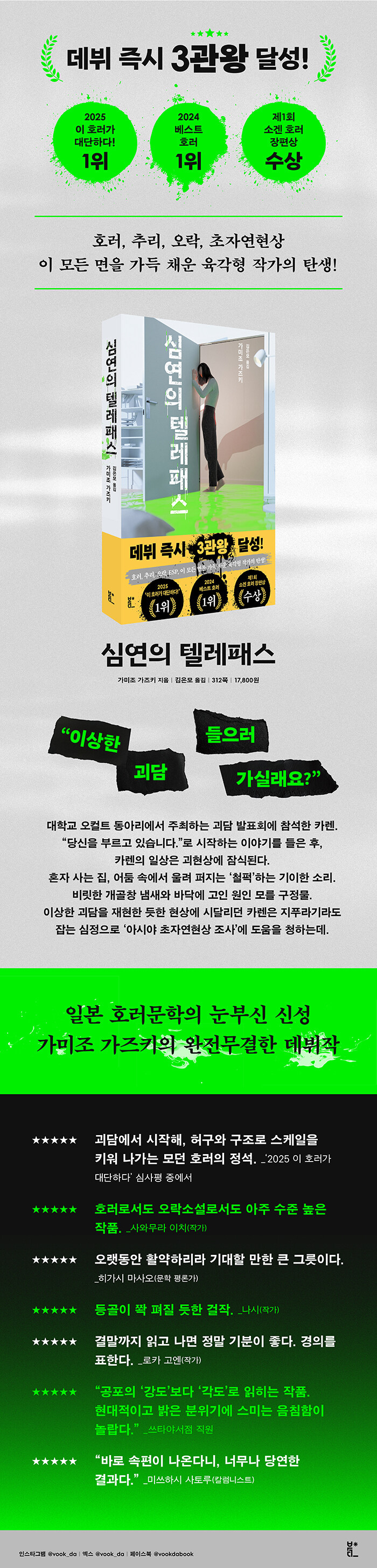 ¡º½É¿¬ÀÇ ÅÚ·¹ÆÐ½º¡»´Â ±«´ã°ú ÃÊÀÚ¿¬´É·ÂÀ̶ó´Â ºñÀÏ»óÀû ¼ÒÀç¿¡, Áö±ØÈ÷ ÇÕ¸®ÀûÀ̰í Çö½ÇÀûÀÎ Ã߸® °úÁ¤À» ´õÇÏ¿© °øÆ÷¸¦ ±Ø´ëÈ­ÇÏ´Â µ¥ ¼º°øÇß´Ù´Â ±ØÂùÀ» ¹Þ¾Ò´Ù. Â÷º°È­µÈ ¼ÒÀç¿Í ´Ù¾çÇÑ À帣ÀÇ Á¢¸ñÀ¸·Î Æø¹ßÀûÀÎ ¼ºÀå¼¼¸¦ º¸¿©ÁØ ÀϺ» È£·¯¹®Çа迡¼­µµ ¡®»õ·Î¿î ¼¼´ëÀÇ È£·¯ ÀÛ°¡¡¯, ¡®´«ºÎ½Å ½Å¼º¡¯À̶ó´Â Æò°¡¸¦ ¹Þ´Â °¡¹ÌÁ¶ °¡ÁîŰ´Â Æò´Ü°ú µ¶ÀÚÀÇ ¿­·ÄÇÑ Âù»ç¿¡ ÈûÀÔ¾î ÈÄ¼ÓÆí ¡ºÆúÅͰ¡À̽ºÆ®ÀÇ Á˼ö¡»¸¦ Ãâ°£, 2026³â ÇöÀç ½Ã¸®Áî ¼¼ ¹øÂ° ÀÛǰÀ» ÁýÇÊ ÁßÀÌ´Ù.
