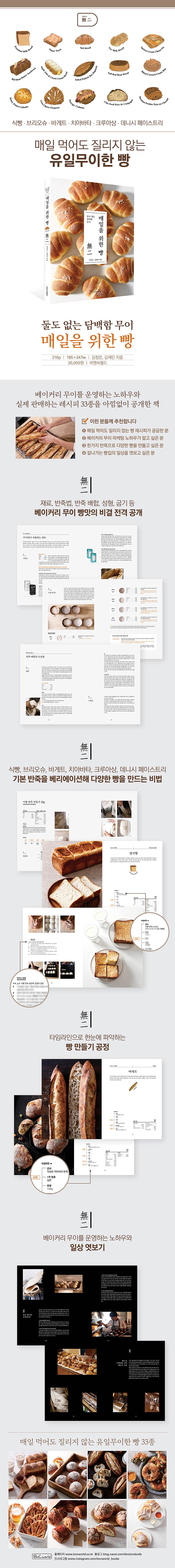 ¿ë»êÀÇ ´ëÇ¥ ¸ÀÁý, ¡®º£ÀÌÄ¿¸® ¹«ÀÌ¡¯ÀÇ ´ã¹éÇÑ ¸À°ú ³²´Ù¸¥ °¨¼ºÀÌ °¡µæ ´ã±ä ·¹½ÃÇǺÏÀÌ´Ù. 2020³âºÎÅÍ ¹«À̸¦ ¿î¿µÇϰí ÀÖ´Â ±èÁ¤Àº, ±èÀç¹Î µÎ ÀúÀÚ´Â ¾ÆÄ§ºÎÅÍ Àú³á±îÁö ¸ðµç ÀÏ»óÀ» ÇÔ²²ÇÒ ¼ö ÀÖ´Â À¯ÀϹ«ÀÌÇÑ »§À» ¸¸µé°í ½Í¾ú´Ù. ±×·¡¼ ¸ÅÀÏ ¸Ô¾îµµ Áú¸®Áö ¾Ê°í ´ÙÀ½³¯ ¸Ô¾îµµ ¸À¿¡ º¯ÇÔÀÌ ¾øµµ·Ï ¹«À̸¸ÀÇ ºñ¹ýÀ» ´õÇØ ·¹½ÃÇǸ¦ ¸¸µé¾ú´Ù. ÀÌ Ã¥ ¡º¸ÅÀÏÀ» À§ÇÑ »§¡»¿¡´Â ±×·¸°Ô °øµé¿© ¸¸µç 33°¡Áö µ¥Àϸ® »§ ·¹½ÃÇǰ¡ ´ã°Ü ÀÖ´Ù. ÇÏÁö¸¸ ´Ü¼øÈ÷ ·¹½ÃÇǸ¸ ÀÖ´Â °ÍÀº ¾Æ´Ï´Ù. °¡º±°í ÃËÃËÇÑ ½Ä°¨À» À§ÇØ ½ÇÁ¦ ¸ÅÀå¿¡¼ »ç¿ëÇÏ´Â Àç·á À̾߱â, µÎ °¡Áö Á¾À» ¸¸µé¾î ¹ÝÁ׿¡ Ȱ¿ëÇÏ´Â ¹æ¹ý, È¿À²ÀûÀÎ Á¦¹ý, ¹ÝÁ× ¹èÇÕÀ» Á¶ÀýÇØ ½ÅÁ¦Ç°À» °³¹ßÇÏ´Â ¹æ¹ý, »§À» ±Á´Â ¹æ¹ý±îÁö »§À» ¸¸µå´Â À̵éÀ̶ó¸é ±Ã±ÝÇØÇÒ ¸¸ÇÑ ¹«À̸¸ÀÇ ³ëÇϿ찡 °¡µæÇÏ´Ù. ¶Ç ½Ä»§, ºê¸®¿À½´, ¹Ù°ÔÆ®, Ä¡¾Æ¹ÙŸ, Å©·ç¾Æ»ó, µ¥´Ï½Ã ÆäÀ̽ºÆ®¸® µî 6°¡Áö ±âº» »§ ¹ÝÁ×À» ÀÀ¿ëÇØ ´Ù¾çÇÑ »§À» ¸¸µå´Â ¹æ¹ýÀ» ¼Ò°³Çϰí ÀÖ¾î º£ÀÌÄ¿¸®¸¦ º¸´Ù È¿À²ÀûÀ¸·Î ¿î¿µÇÏ´Â ¹æ½Ä ¶ÇÇÑ ¿³º¼ ¼ö ÀÖ´Ù. Ã¥ Áß°£Áß°£ ¸ÚÁø »çÁø°ú ÇÔ²² »ðÀÔµÈ Ä®·³À» ÅëÇØ¼´Â »§À» ¸¸µå´Â º£ÀÌÄ¿·Î¼, ÆÀ¿øµé°ú ÇÔ²² ¸ÅÀåÀ» ¿î¿µÇϰí ÀÖ´Â ¿À³Ê·Î¼ ±×µ¿¾È ´À³¤ Á¡À̳ª ¿¡ÇǼҵå, ¾ÆÀ̵ð¾î µîÀ» ³ª´©°í ÀÖ¾î Àд Àç¹Ì ¶ÇÇÑ ½ò½òÇÏ´Ù. ¡º¸ÅÀÏÀ» À§ÇÑ »§¡»À» ÅëÇØ À¯ÀϹ«ÀÌÇÑ ¹«ÀÌÀÇ »§°ú ¹«ÀÌÀÇ ÀÏ»óÀ» ¸¸³ª º¸ÀÚ.