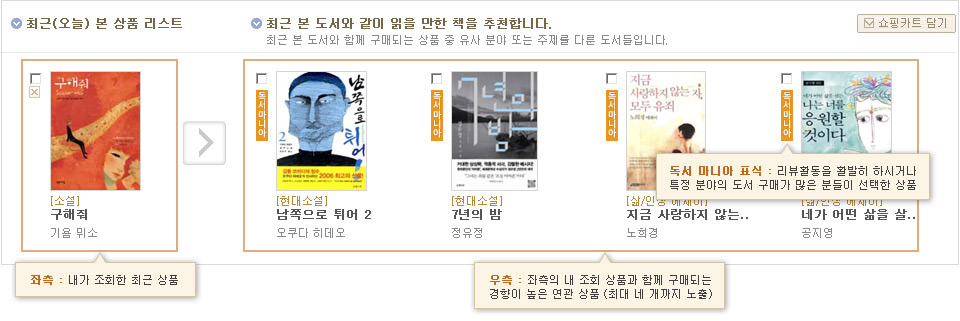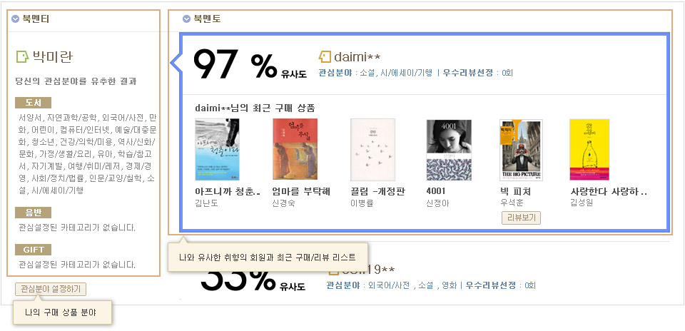 ȸ¿ø´ÔÀÌ ÁÖ·Î ±¸¸ÅÇϽô »óǰÀÇ ºÐ¾ß¸¦ ºÐ¼®ÇÏ¿© ±× ºÐ¾ß¸¦ ÁÖ·Î ÀÌ¿ëÇϽô ´Ù¸¥ ȸ¿øÀÇ ÃÖ±Ù ±¸¸Å ¸®½ºÆ®¿Í ¸®ºä ¸®½ºÆ®¸¦ º¸¿©µå¸³´Ï´Ù.